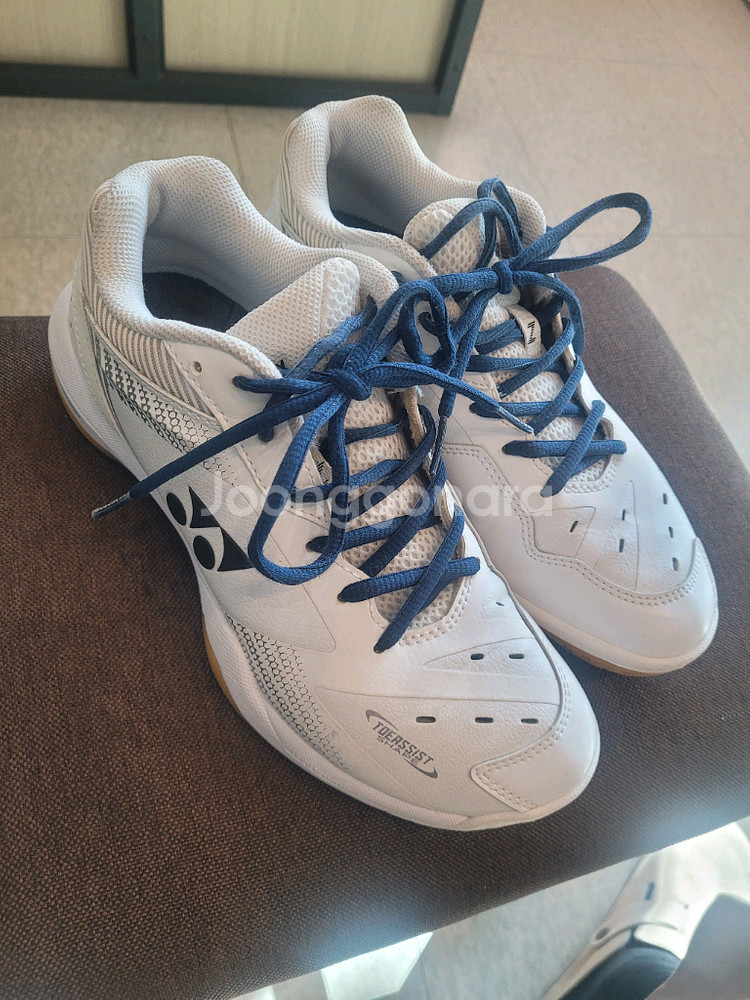 배드민턴화입니다. 화이트 베이스에 네이비 끈으로 깔끔한 디자인이에요. 사용감은 와이프가 3번인가 신었는대.. 사이즈 잘못사서 안신고 있는 상태입니다 민턴 동호인 이라면 누구나 아는 그 시리즈 65z 시리즈 지금 구매하시면 이득이예요 밑에 생고무창도 논슬립이라 안 미끄럽구요 고무 경화상태도 아주 좋습니다. 싸이즈 245입니다