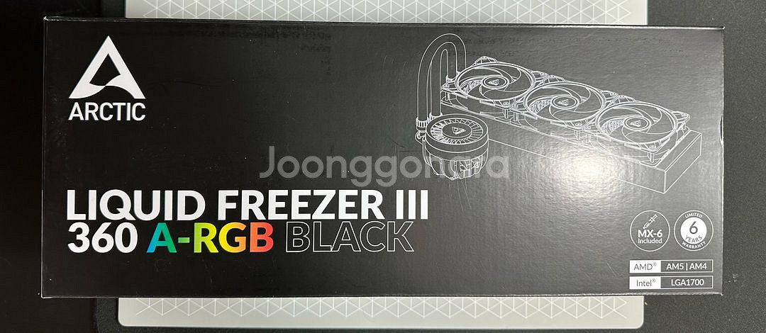 ARCTIC Liquid Freezer III 360 A-RGB BLACK 수냉 쿨러입니다 24년 11월 구매한 제품입니다 실제 사용 기간은 2개월 남짓입니다 서린 공식몰에서 구매했고 펌프 소음 좀 있습니다 서린에서도 공식으로 안내된 사항이며, 냉각수 흐르는 소리인지 펌프 소음인지 조금 있습니다 개인차나 귀가 예민하신 분들은 이점 고려하고 구매 결정 부탁드립니다