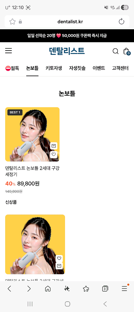 덴탈리스트 논보틀 2세대 구강세정기 새상품