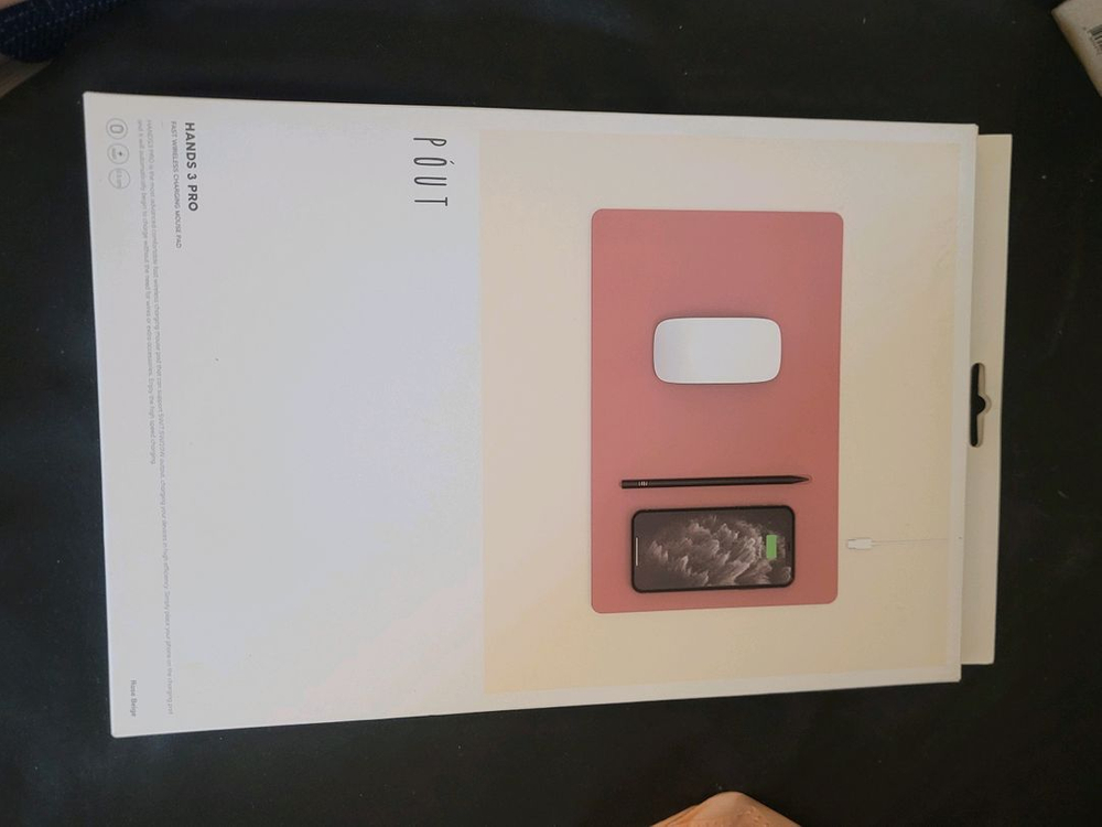 파우트 HANDS 3 PRO 무선충전 마우스패드 새제품 - 사이즈는 346 x 225 x 5mm이고 무게는 310g입니다 - PC, ABS, PU 가죽, 나무 재질로 만들어졌습니다 - 스마트 기기를 무선으로 충전할 수 있습니다 .