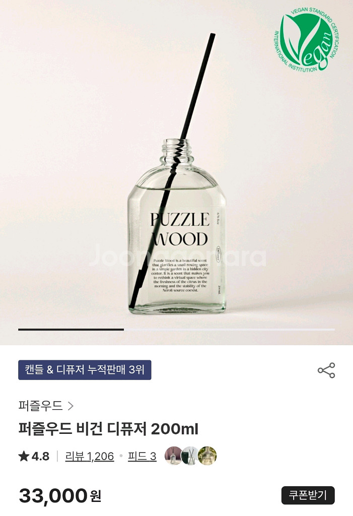 퍼즐우드 비건 디퓨저 200ml 새상품 제조일자 2024.12.18