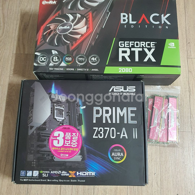 사진상 ASUS 프라임 Z370-A, I7-8700K 셑 135,000원 (셑으로 사용하던 ddr4 8G 삼성메모리 4개 개당 5만원 이엠텍 블랙에디션 RTX2080 130,000원 별도로 판매합니다) 2025년 봄 업뎃후 보관하다가 판매 합니다. 댓글 주세요