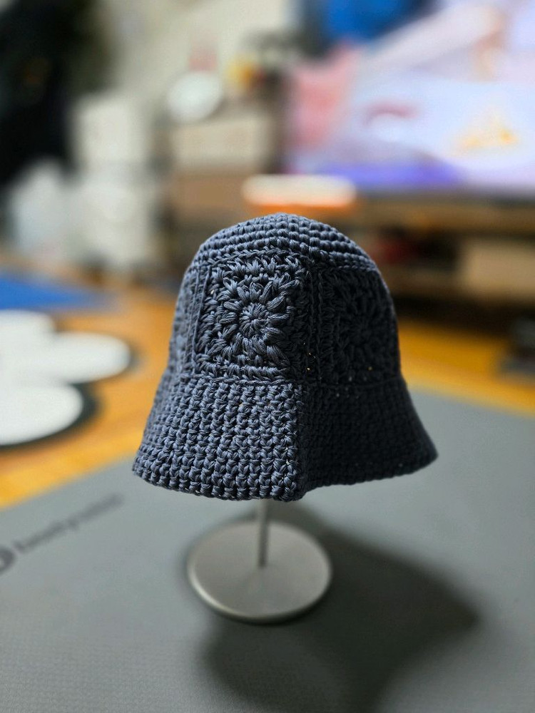 여름용이고 정말 이쁩니다. 구매가 13만원 이었네요. Nine Tailor 브랜드의 뜨개 버킷햇입니다 네이비 색상이고, 손뜨개로 만들어진 제품입니다 독특한 짜임이 돋보입니다