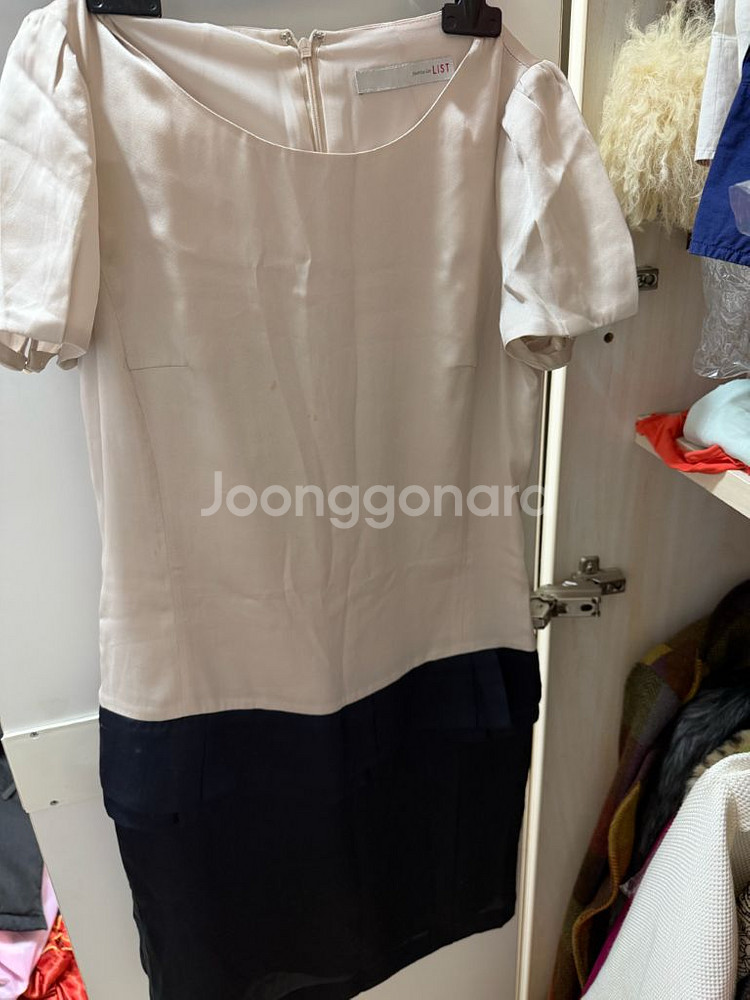 베이지와 블랙 컬러가 조화로운 원피스예요. 깔끔한 디자인으로 다양하게 코디하기 좋을 것 같아요. 상태 양호합니다!