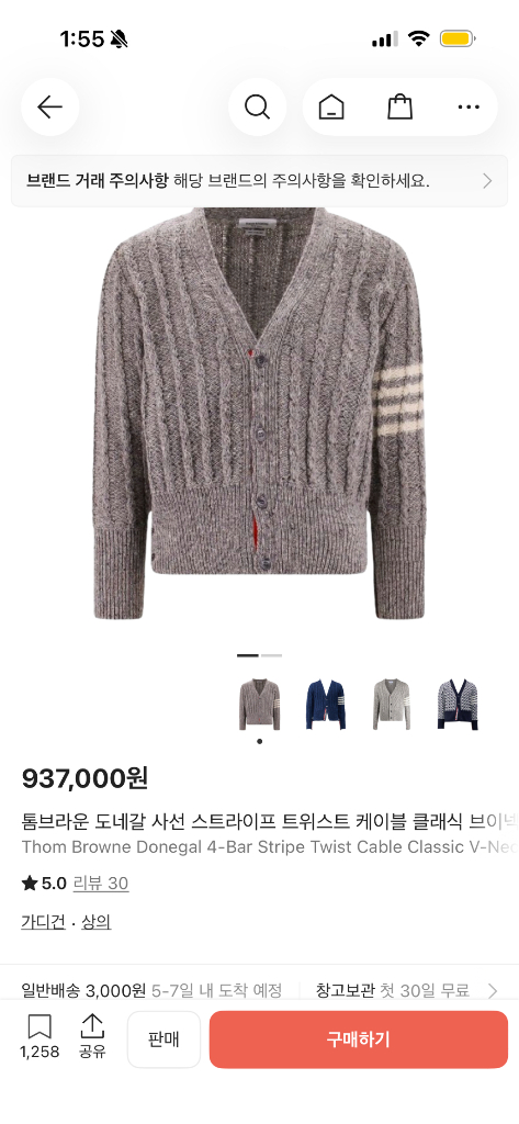 톰브라운의 도네갈 사선 케이블 니트 가디건 4사이즈입니다 크림에서 구매하였으며 비닐백에 들어있던 상태 그대로 꺼내보지도 않았습니다.