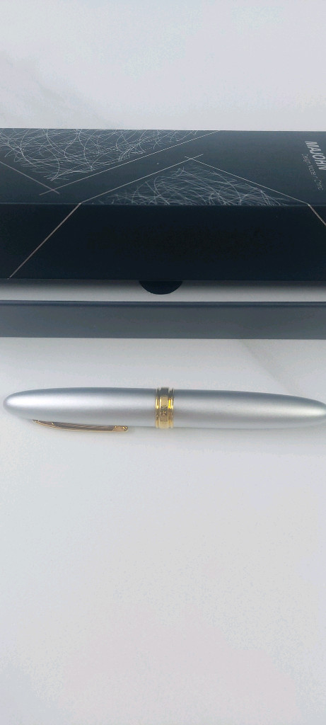 마이크로-미코사 Montagne 금장만년필 판매합니다. 사진과 같이 독특한 라인이 특징이며 여성분 사용, 수집하기에 좋아보이며 아주 예쁩니다. 닙은 F촉이며 작지만 안정된 필기감을 느낄수 있습니다. 구매후 보관만한 제품이라 상태 좋습니다.(미사용) 해당 케이스는 없어서 다른 케이스에 넣어드려요. 우체국택배로 보내드려요.