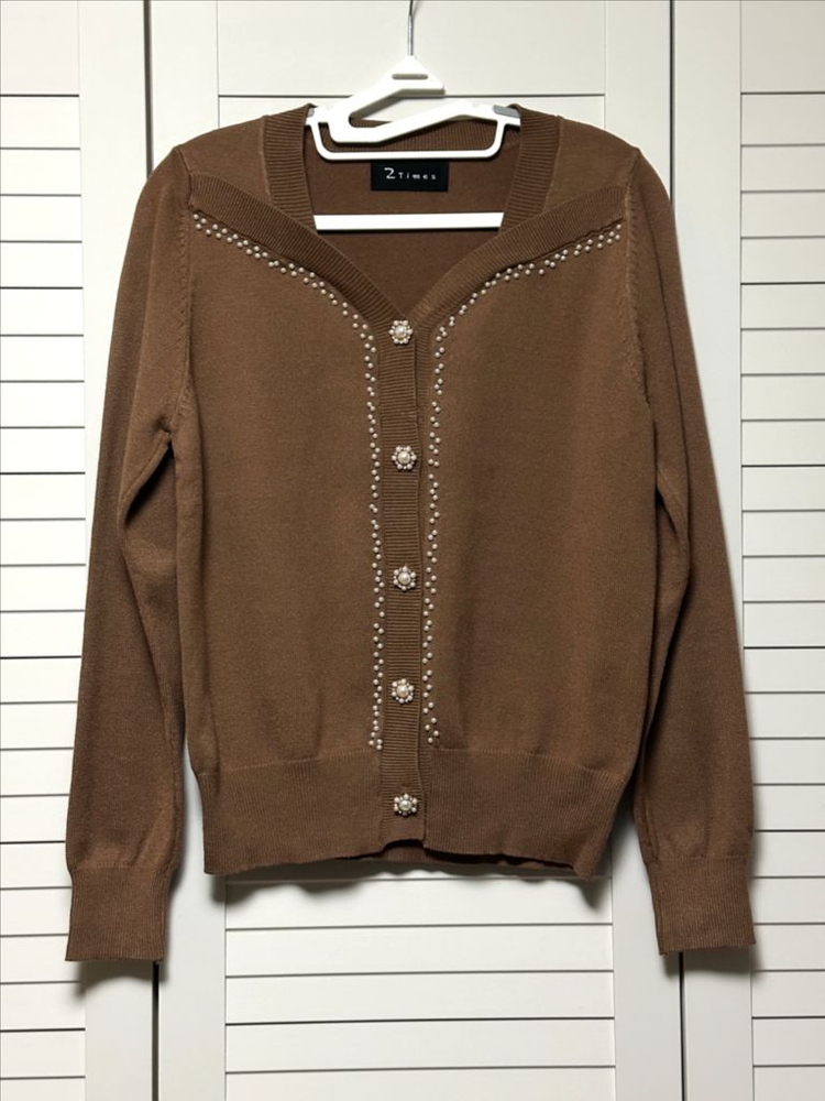🥳 새상품 : 고퀄제품 도매가 이하로 판매해요. 😇 중고상품 : 상태 좋은 제품만 판매해요. 🔐 안전결제로만 거래해요. 택배비 별도예요. 📦 꼼꼼하게 포장해서 우체국택배로 보내 드려요. 🚚 우체국택배가 접수하면 보통 다음날 도착해서 좋아요. 👔 제품포장부터 택배접수까지 사진 공유해 드려요. 💝 교환, 반품, 환불은 안 되니 신중구매해 주세요. 📱 핸드폰 화면마다 색감 차이가 있을 수 있어요. 👀 사진 꼼꼼히 확인하고 더 궁금한 점 질문해 주세요. 가격은 고정이에요. 수량 있을 때~ 사이즈 맞으면 득템해서 예쁘게 입으세요~ 🤗 가단 46cm 총장 55cm 재는 위치에 따라서 사이즈 차이가 있을 수 있지만 평소에 자주 입는 옷 사이즈랑 비교해 보고 구매하시면 사이즈 실패 확률이 적을 거예요. 😉 브라운 컬러의 오픈형 진주 니트 가디건이에요. 국내제작이래요. 그래서 그런가 원단도 부드럽고 짜임이 촘촘해서 가격대비 너무 좋아요. 진주도 다 징처리 되어 있어서 떨어질 걱정 안 해도 돼요. 진주 장식이랑 예쁜 단추로 고급스럽고 넥라인이 여성스러움을 더해줘서 출근룩도 좋고 데이트룩이나 하객룩으로 좋아요.