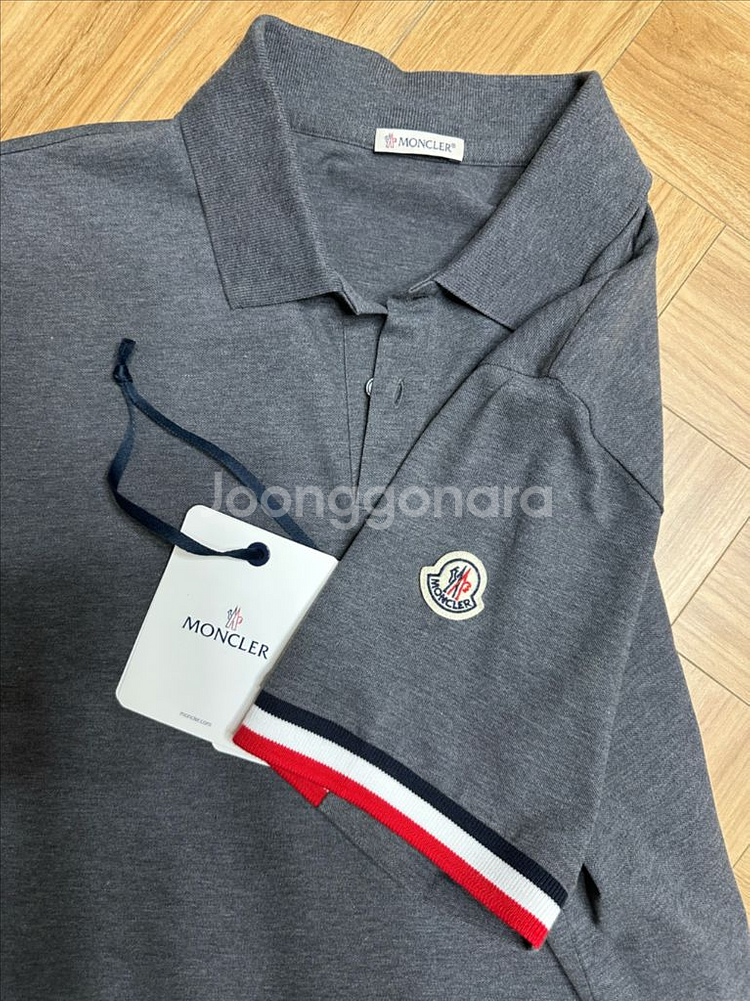 몽클레어 남성 폴로티셔츠 새상품입니다. 전 팔이 너무 꽉 끼어서 판매해요 사이즈 체크 겸 입어보고 걸어두었어요 사이즈는 XL이고, 색상은 회색이에요. 소매 부분에 빨강, 흰색, 파랑 스트라이프 포인트가 있습니다. 105입으시는 분들 입기 딱 좋아요