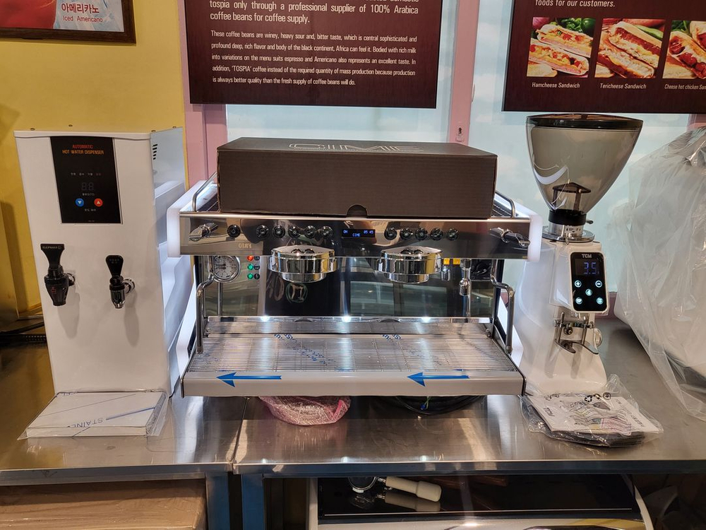 이태리 씨메 CO-03 네오 2그룹 커피머신 최신(새상품)모델 ↑ 프리인퓨전 설정 가능(ON/OFF) 사이드 라이트,그룹 헤드 LED +TCM 전자동 그라인더 68mm티타늄 플랫버 색상선택(새상품)​ +대아메탈 HW-13P 핫워터 듀얼 디스펜서 ​신품(새상품) 미개봉 박스완포로 출고 됩니다 워런티 1년 무상 AS 그라인더,디스펜서 변경 가능합니다 인천 010-9139-7900 전국배송가능
