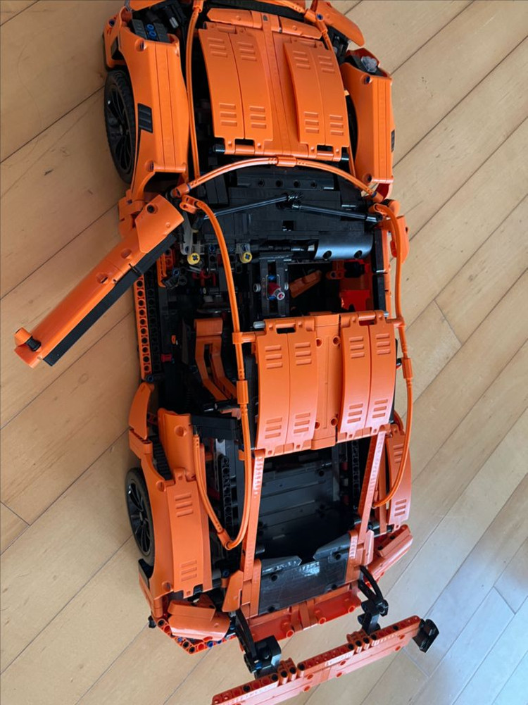 레고 호환 테크닉 스포츠카 세트로 완성품 상태입니다. 오렌지와 블랙 컬러의 멋진 스포츠카 모델이에요. 조립 상태 양호하고 디테일이 정말 좋습니다!
