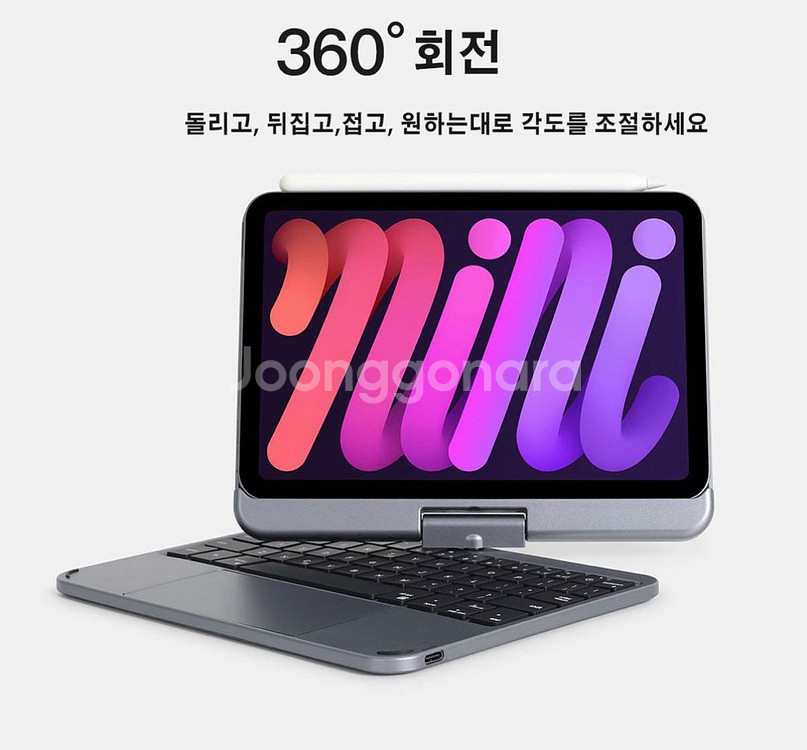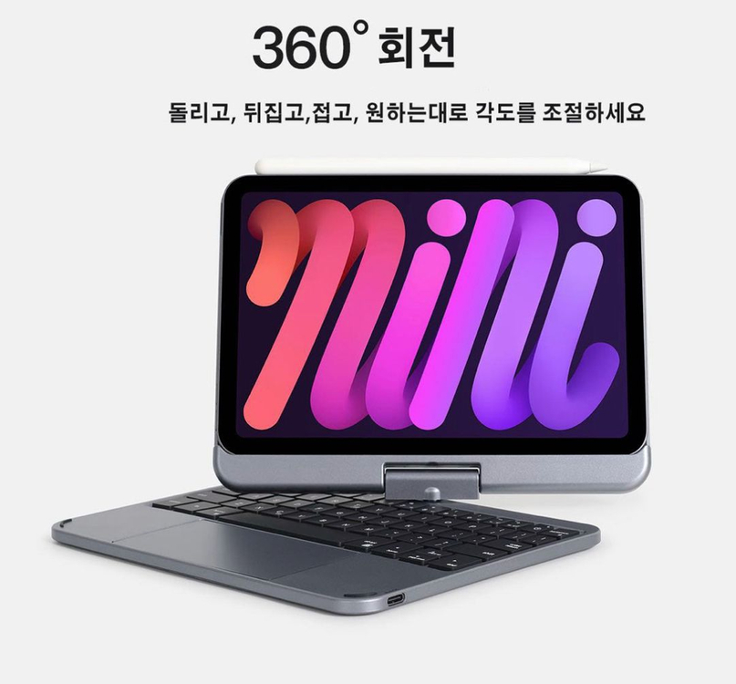 DOQO 아이패드 미니 매직 키보드 케이스입니다. 360도 회전이 가능해서 원하는 각도로 조절할 수 있고, 마우스 터치패드가 있습니다. 아이패드 미니 6와 7에서 사용 가능합니다. 영문각인이고, 바닥면에 실기스가 좀 있는거 외에는 상태 좋습니다.