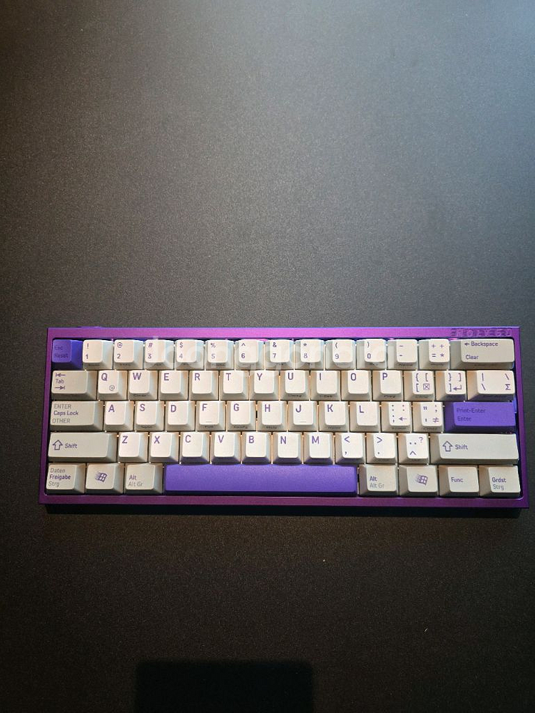우팅 60에서 케이스만 바꾼 키보드입니다 2차 구매자이며 실사용 많지 않습니다 스위치는 게이트론 lekker 자석축이며 키캡은 fbb retro purple 입니다 우팅 기본케이스와 우팅 기본 usb c to a 케이블 도 함께 보내드립니다 연락주세요!