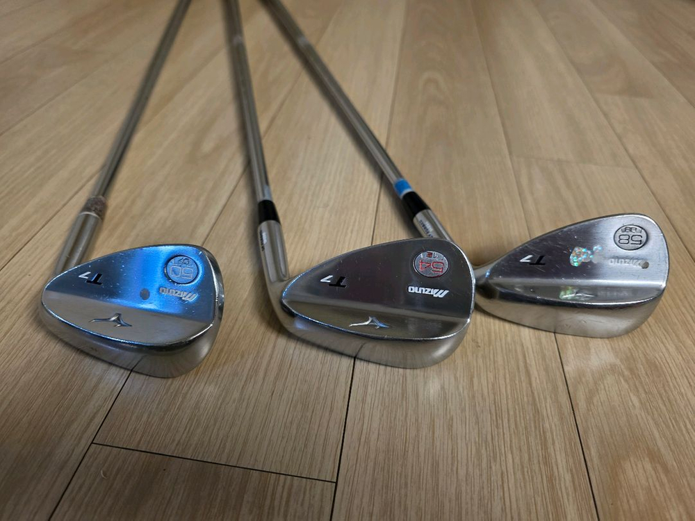 골프 웨지 3개 세트입니다. 사용감은 있지만 전체적으로 양호한 상태예요. 골프 웨지 세트로 우선 판매합니다. 개당 7만원 합계 19만원