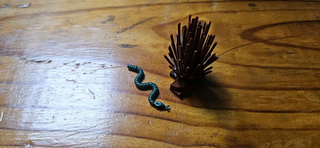 레고 부품 세트입니다 - 브라운 색상의 솔방울 모양 부품과 그린 색상의 뱀 모양 부품이 포함되어 있습니다 - 레고 조립에 필요한 추가 부품으로 활용 가능합니다. 장식용으로 좋아요!!