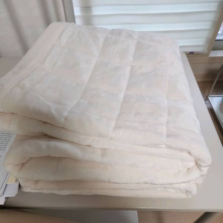 크림색상 이번 겨울에 구입했고 세탁 안 한 새제품입니다 150×200 퀸 사이즈이고 도톰하고 부드러워요 물세탁 가능합니다