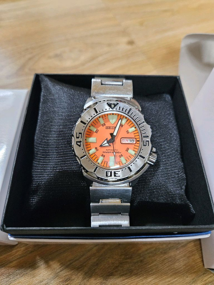 세이코 오렌지 몬스터 1세대 일본산 오토매틱 다이버 시계입니다( 삼정시계 정식수입) - 모델 번호는 SKX781J1입니다 - 200m 방수 기능이 있습니다 - 뛰어난 가독성을 제공하며, 견고한 내구성을 자랑합니다 박스, 보증서, 추가 밴드 부품 포함되어 있습니다 - 정상작동 - 환불불가