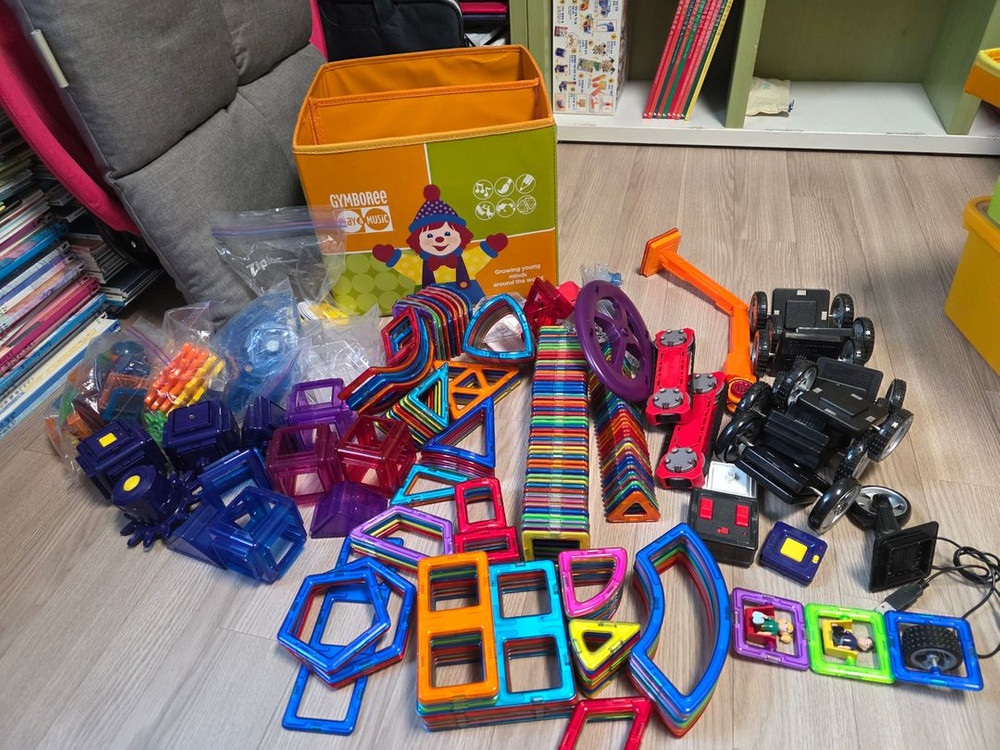 남자아이 창의력 활동으로 롯데사이트에서 50만원 넘게주고 구매한 맥포머스 자석블럭입니다. 이것저것 혼자 만들고 잘 놀았네요. 그때 당시 젤 구성 많은걸로 샀고 아이가 1명이라 깨끗하게 사용했고 파손 전혀 없습니다. 정리함과 가이드북. 구매시 같이 있던 구성품 다 있습니다. 20만원. 직거래(경기도 남양주시 다산동,도농동이나 하남경찰서 부근 가능) 택배(착불)가능합니다. 제품 상태는 상세사진 참고 해주시고 파손 우려로 인해 반품, 에눌, 예민님 사양하겠습니다.