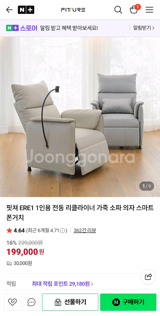 1인용 전동 리클라이너 가죽 소파예요. 상태 S급 양호합니다. (휴대폰 거치대까지 있어요) 거래시 직접 가지고 가셔야합니다.(어머님 집) 주소는 부산 남구 석포로64번길 33-10입니다.