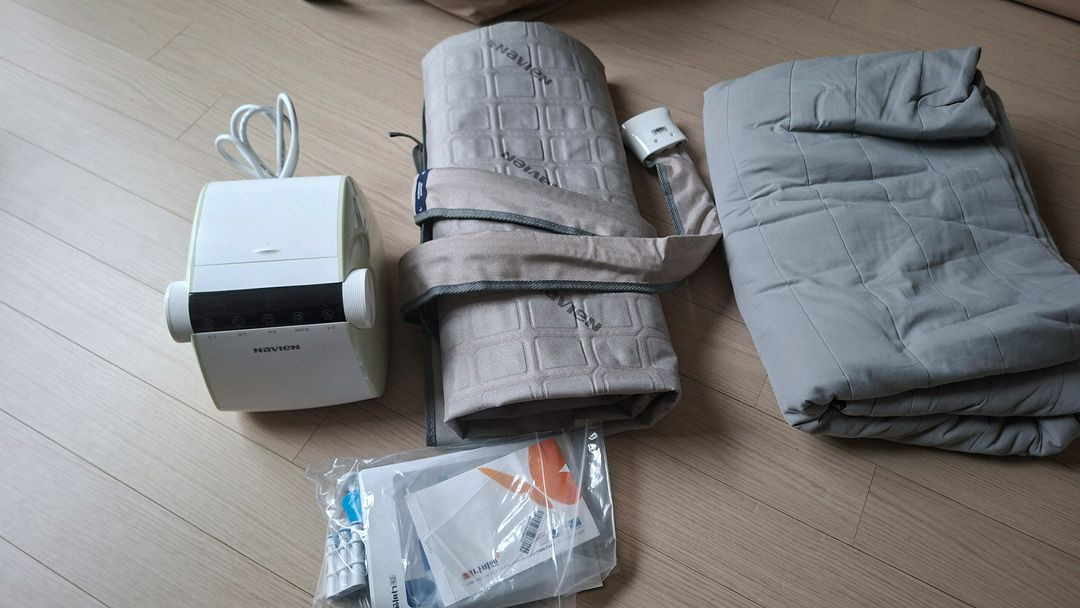 경동나비엔 온수매트 EQM511-QS 모델입니다 사진에서 보시는 것처럼 매트 부분에 수선 흔적이 있습니다 양쪽 온도조절되서 유용합니다 매트커버는 세탁해놓았고 정상작동 확인까지 완료했습니다