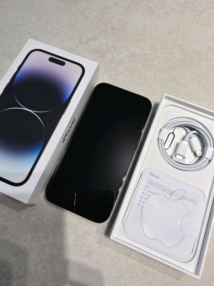 아이폰 14 Pro 256G 스페이스 블랙 판매합니다 공식서비스센터에서 배터리 유상 교체했으며 배터리 성능 100% 입니다 화면 생활기스 사진 참고 부탁드리며 사이드, 뒷판 기스거의 없이 깨끗합니다 케이블 새제품 포함 풀박스 입니다