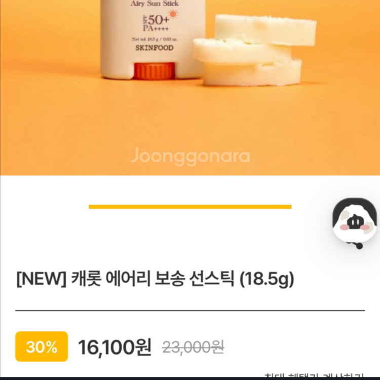 ![[새제품]스킨푸드 신제품/피지조절/보송당근선스틱--0](https://img2.joongna.com/media/original/2026/01/18/1768715051610Euf_0IR25.jpg?impolicy=resize)