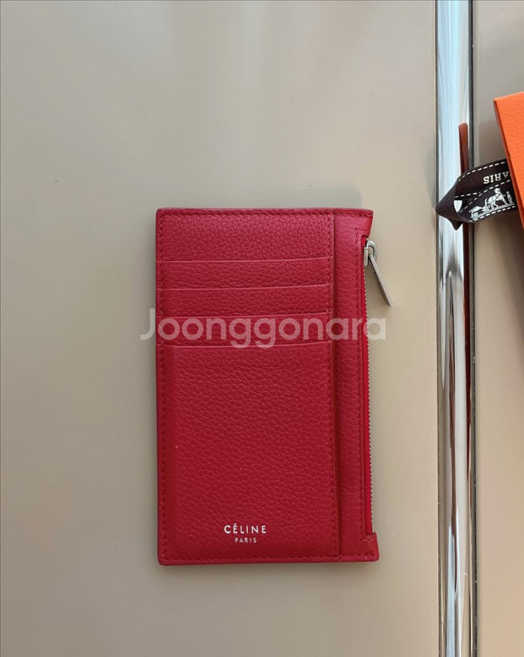 셀린느 카드지갑 레드컬러예요. 블랙,레드 두 컬러 출시될 때 구매했던 제품이고요. 신세계 백화점 구매입니다 (진품) 모서리 마모된 곳 없고, 가죽까짐 없지만 사용감은 조금 있어요. 빨강색 지갑이 돈 많이 들어오게 하잖아요~~ 구성품이 없어 다른 명품 박스에 넣어 보내드릴게요.