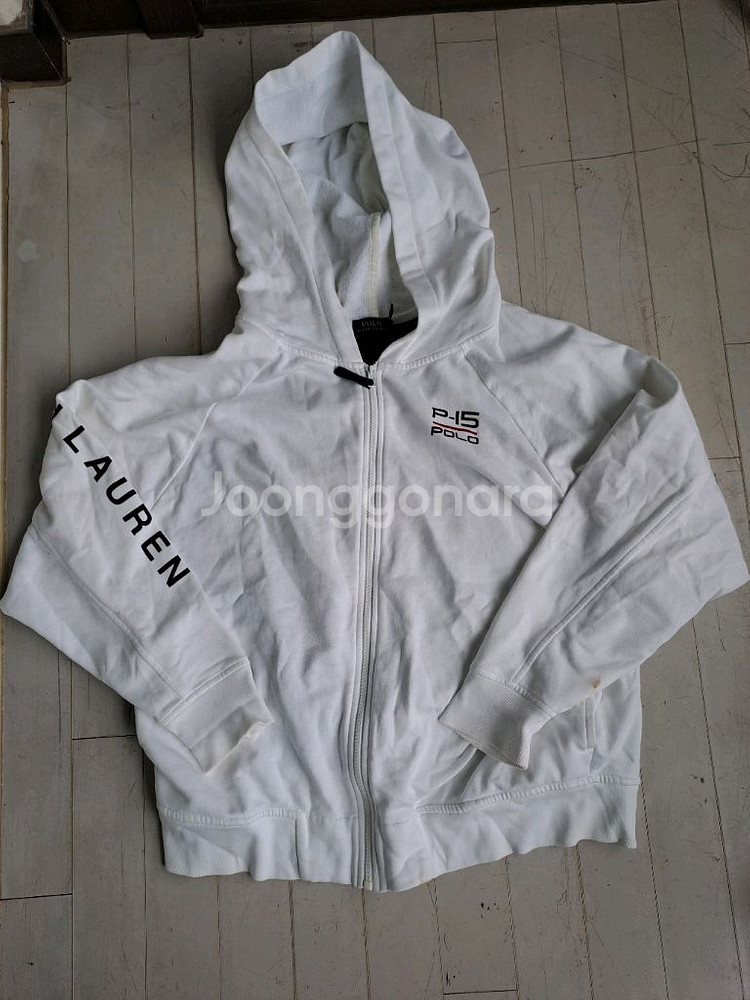 폴로 랄프로렌 흰색 후드집업 M사이즈입니다.가슴단면64 기장60 - 면 소재로 편안하게 입을 수 있습니다 - 캐주얼한 디자인으로 다양한 코디에 활용하기 좋습니다 - 사진에서 보이는 하단지퍼옆과뒷면얼룩이 있습니다.(잘안보임)