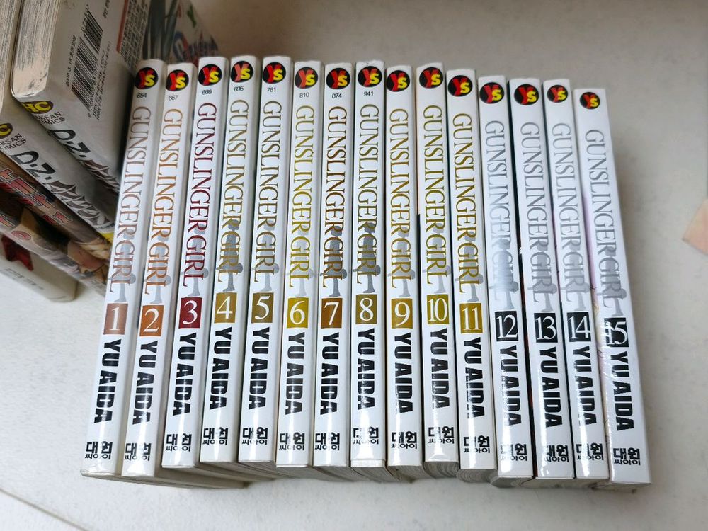 건슬링거 걸 만화책 전권(1 ~ 15권)입니다 15권은 물 뭍어서 우글우글한 부분있습니다 사진 2,3번 확인하시기 바랍니다 중고상품으로 반품 환불 불가합니다 평일 점심 양천 신정6동 주민센터앞 문고리, 평일저녘, 주말 충훈동에서 직거래만 합니다