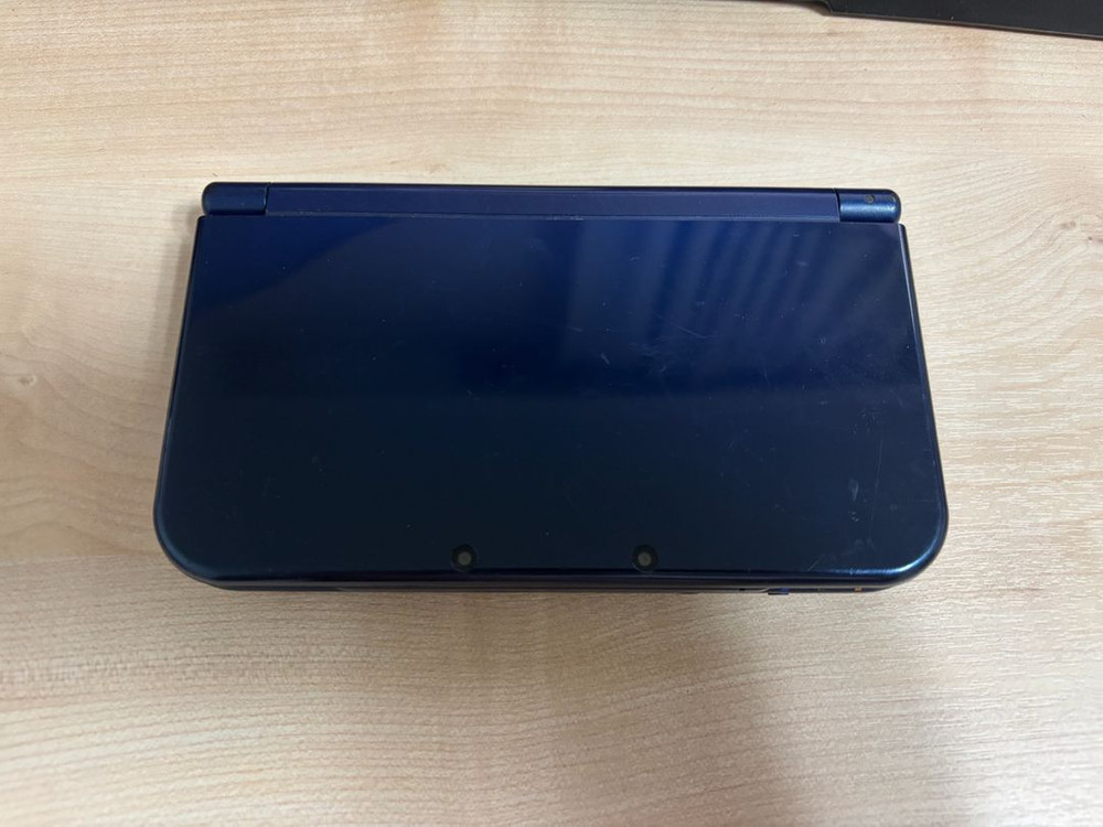 휴대용 게임기 3DS XL 블루 색상입니다. 화면이 정상적으로 켜지고 작동 상태 양호해 보여요. 포켓몬뱅크 설치되어있어요
