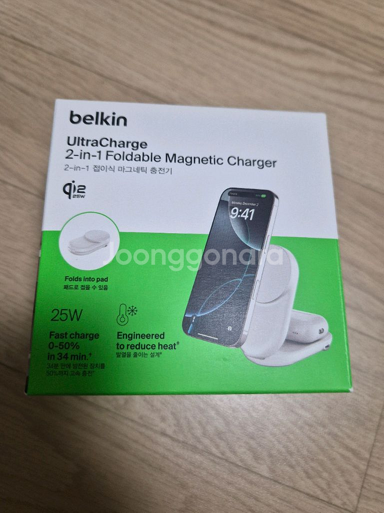 벨킨 qi2 25w 2in1 울트라차지 폴더블 마그네틱 무선 초고속 충전기 WIZ039 화이트 판매 5일전에구매했고, 높이가 마음에들지않아판매합니다. 풀박스이며 새거랑 다름없습니다.