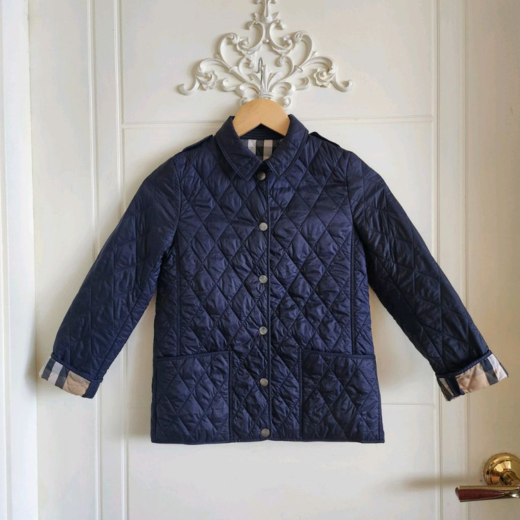 140호 (10y) 버버리칠드런 퀼팅 누빔 자켓 -정품- 새상품급. 상태최상. (10y/140cm) 140cm 남아 추천. 네이비 색상의 심플하고 세련된 자켓이에요.. 솜누빔자켓으로 가볍고 따뜻해서 간절기에 입으면 고급스럽고 예쁜 제품이에요.~ 몇번 안입어 상태 좋고 깨끗합니다. 실풀림, 오염 없음. -드라이클리닝 완료. 바로 착용가능. -무료배송