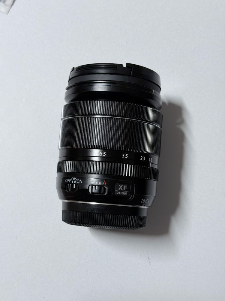 후지필름 XF 18-55mm F2.8-4 R LM OIS 렌즈입니다 - 58mm Kenko AIR MC UV 필터 포함 - 손떨림 보정 기능으로 안정적인 촬영 가능 - 가벼운 무게와 컴팩트한 디자인으로 휴대성이 좋습니다 - 렌즈알에 찍힘 1개 있는데 사용할 때 아무 문제 없습니다 - 후드는 없습니다