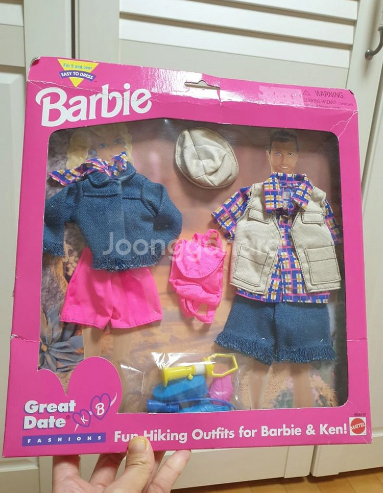(미개봉) 바비, 켄 커플 인형옷 세트상품입니다 외국에서 어렵게 구한 상품이라 국내는 물론 해외에서도 구하기 힘드실거예요 바비인형과 남자 인형 켄 커플 옷이 들어있어요 1995년에 나온 상품이라 희귀한 아이템이라 소장가치 있습니다 새상품이지만 세월감이 조금 있어요 하이킹 컨셉으로 모자 옷, 신발, 가방, 소품이 들어있어요 인형을 좋아해서 모으다가 조금씩 정리 하려고 해서 다른 상품도 올릴 예정이니 같이 보시면 좋을듯 합니다 중고거래 특성상 반품 환불 불가합니다 택배 가능합니다