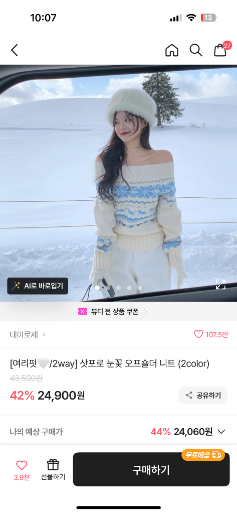 에이블리 노르딕 오프숄더 미착용