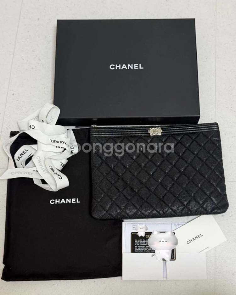 - 샤넬 보이 캐비어 은장 클러치 미듐 블랙 - 박스, 품질 보증서 등 구매 시 받은 구성품 모두 드립니다. - 신세계백화점 본점에서 구입하고 사용량적고 잘 보관했습니다. - 중고 제품이라 당연히 환불 어렵습니다