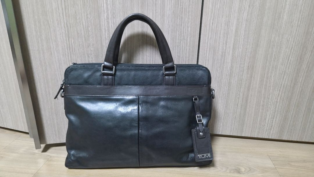 투미 TUMI 정품입니다 기본 가죽 서류가방이고 크로스백 입니다 모델명은 Easton Slim Top Zip Brief Leather 입니다 컬러는 몸판은 블랙이고 배색은 다크브라운 입니다 가로40 세로30 폭8 입니다 전체가 부드러운 소가죽 입니다 매인칸 중앙에 한칸 입니다 앞뒤로 지퍼로된 보조공간이 있습니다 사용감 있지만 튼튼하고 멋스러워요 사진 참고바랍니다
