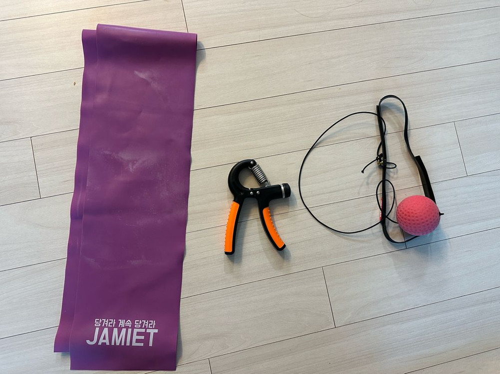 개인정보(거래정보)를 주고받는 행위는 사기에 노출될 수 있으므로 즉시 중고나라로 신고해 주세요악력기, 고무 스트레칭 밴드, 순발력 펀치볼 운동기구 팝니다! 사진에 보이시는거 전체 일괄 가격이에요// 시간나실때 틈틈이 건강 챙길 수 있는 운동기구들이에요~^^