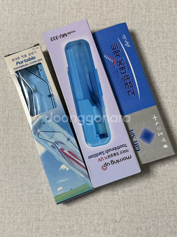 개인정보(거래정보)를 주고받는 행위는 사기에 노출될 수 있으므로 즉시 중고나라로 신고해 주세요휴대용 칫솔 살균기 새 제품 3개 입니다. 2개는 UV 살균 기능이 있고, 나머지 1개는 그냥 칫솔세트입니다.