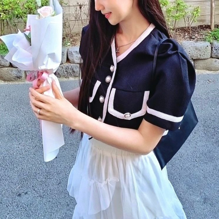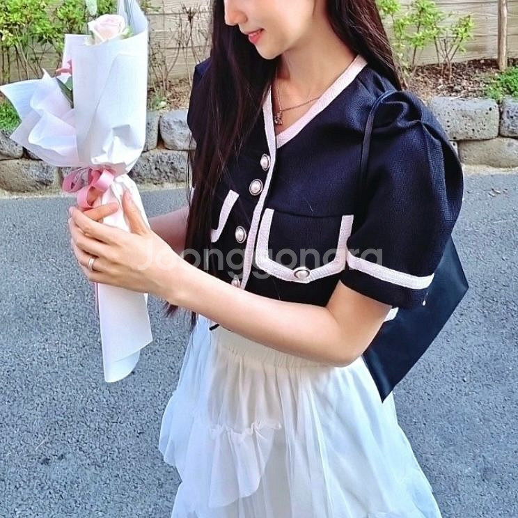 총장 41 가슴단면 44 (잠궜을 때) 어깨 39 (퍼프 포함) 사이즈 44 ~ 55 소재 폴리에스테르 진주 단추와 어깨 퍼프 포함되어 귀엽고 여성스럽고 크롭이라 트렌디한데 너무 짧지 않아요 ! 블랙 화이트 조합이라 무난하고 하객룩이나 격식 있는 자리에도 좋습니다 폴리 소재라 시원하고 전혀 덥지 않습니다 사이즈는 M이라 되어있지만 S이라 봐주시면 좋고 가슴단면 참고해서 구매 부탁드립니다. 하자, 이염 전혀 없고 깨끗합니다. ❗모든 상품은 입금 순 판매입니다 ❗일반택배 4000원, 반값택배 2000원 ❗사이즈 이유로 반품 불가 ❗가격제안, 대화신청 후 답 없을시 비매너평가