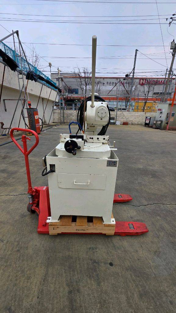 원형톱 형태의 저속형 금속 각도절단기 판매합니다. 절단 헤드가 45도까지 돌아가는 각도 절단가능 타입이며 3상모터+감속기가 달려있어, 절단시 토크가 높은 제품입니다. 절단시 불꽃이 튀지않고 절단면이 아주 깨끗하게 컷팅이 되는게 가장 장점입니다. 국산 제조품이며 절삭유 펌프가 장착되어 있어 절단시 절삭유 공급이 가능합니다. 톱날 회전이 빠르지 않아 스텐이나.... 난삭재 소재을 자르는데 유리합니다. 절단 톱날은 14인치이며, 구매시...절단 톱날은 용도에 맞는 신품으로 구매후 사용하시기 바랍니다. 판매지역은 경북 구미입니다. 판매금액은 150만원 입니다.(네고불가) 직접 오셔서 확인후 구매를 바라며, 먼 지역은 대신화물 주소지 영업소로 착불로 배송 해드립니다. OIO 구구삼영 하나하나삼삼