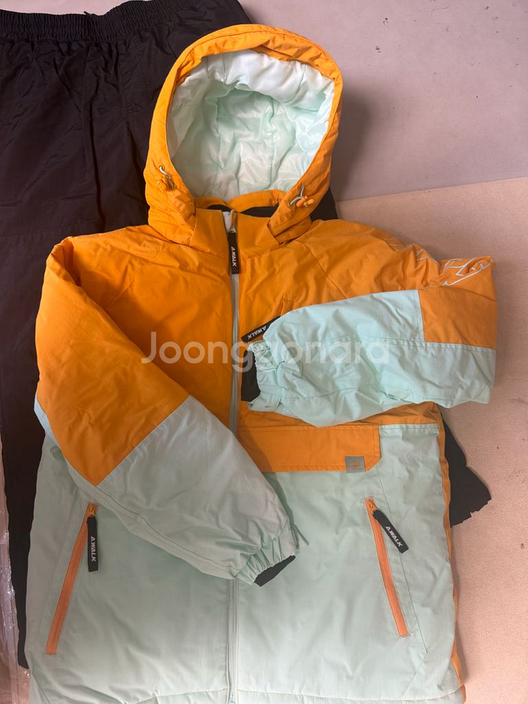 스키복 아우터 바지 상하의 세트입니다. 오렌지, 민트색 상의와 블랙색상 하의로 구성되어 있고, 전체적으로 깔끔한 상태예요. 옷 색상이 멀리서도 눈에 확 잘 튀어 아이 찾기 편해요. 스키캠프에서 이틀 착용 세탁 후 보관하고 있던 상태입니다. 큰 흠은 없으나 새상품은 아니니 예민하신분은 구매 삼가해주세요. 택배비 포함 10만원입니다.