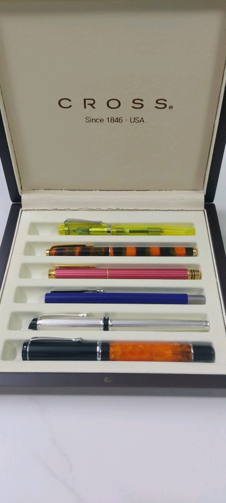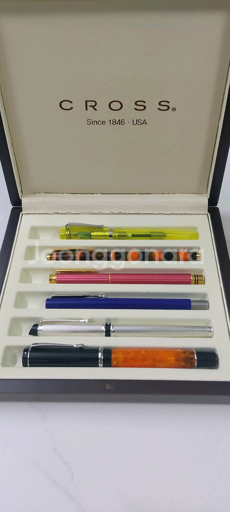 국제브랜드 만년필 6종을 판매합니다. 케이스가 없어서 모음으로 저렴하게 내놓습니다. 빈티지 제품이나 모두 미사용으로 상태 양호하고 F닙이며, 몬테베르데 하나만 M닙 입니다 순서대로 1. 콘클린 Toledo듀라그라프 (미국) 2. 바른손이리듐point (독일) 3. 파카벡터 (프랑스) 4. 마이크로-미코사 아테나 (일본) 5. 마이크로-미코사 모네트 (일본) 6. 몬테베르데 (미국) 고풍스러운 상자(6입)에 넣어 드립니다. 이체시 12만원 우체국택배로 보내드려요.