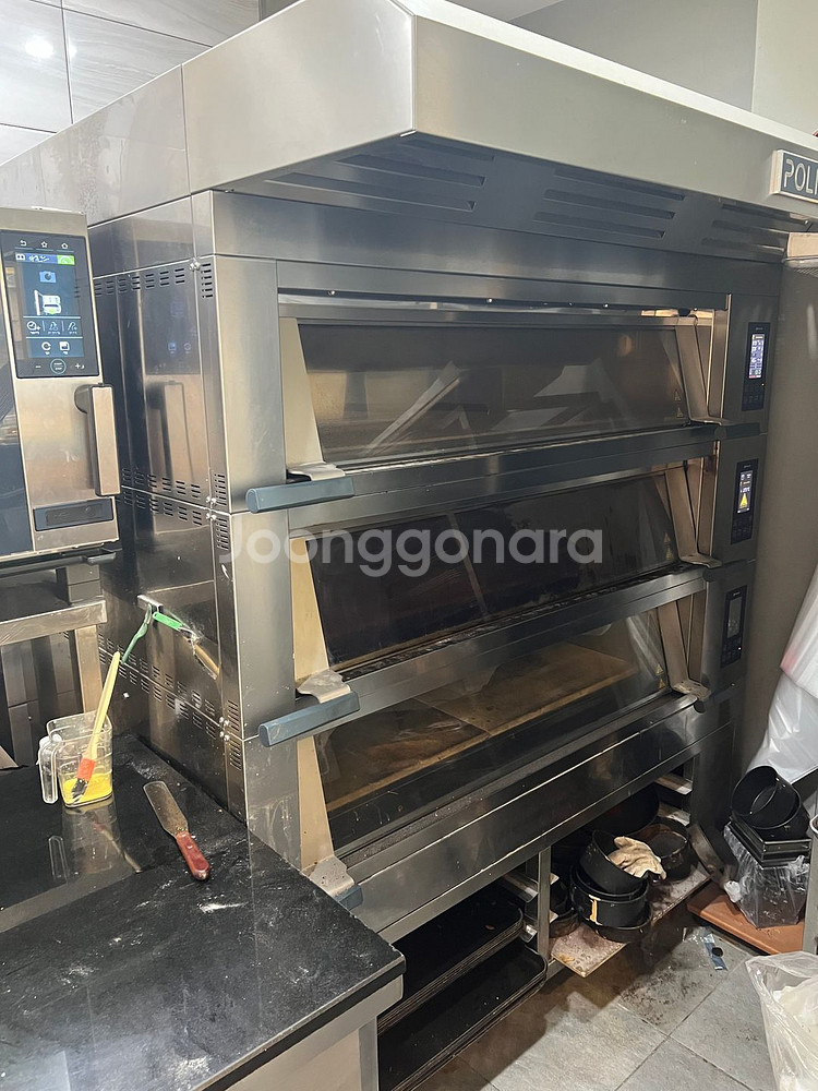 폴린 4매 3단, 2023년 구매 에셔 스파이럴믹서 40L(1포), 2023년 구매 론도 SSO5303(하단 스탠드만 빠진 5304와 같은 모델), 2021년 구매 라진 도우컨 36매 2도어, 2021년 구매 우녹스 베이커탑 4매, 2021년 구매 모든 장비 제가 첫번째 구매자이며 모두 정상 작동하며 청소 후 온도/습도 조절이되는 창고에 보관중입니다. 새로 업장 오픈하실 계획이면 그대로 가져다 바로쓰시면 됩니다. 운반 및 설치비 별도