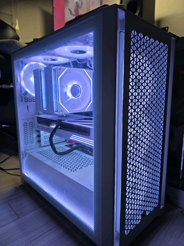 (우선 그래픽만 신품이고 나머지는1-2년정도 사용한 중고입니다) 그래픽만 신품가 180정도 입니다 라이젠7 5800X3D 국내정품 ROG 스트릭스B550-XE GAMING WIFI+ 블루투스 DDR4 3200 삼성 32GB X 2EA 총 64GB 듀얼구성 삼성 970 EVO PLUS M.2 2TB (2000GB) SSD 지포스 RTX5070TI 16GB OC EX 게이머 화이트 갤럭시 FSP PTM 1200 ATX3 PCI 5.0 직렬O 플레티넘등급 파워 커세어 화이트파워 커세어팬 총 6개장착 + LED BAR 하단장착 SOCOOL 3R SYS 듀얼타워 공랭 화이트(LED 팬변경) 윈도우11 PRO DSP 인증 설치. 저소음, 커세어 고급세팅입니다. 더싸게 사시는방법 있습니다 (램 64GB에서 32GB 변경시 -10만할인) (SSD 2TB에서 512GB변경시 -10만할인) 이렇게 총 할인 방법있습니다 판매가 340만,_ 수원입니다^^ 5317 - 2258 언제든 문의주세요.