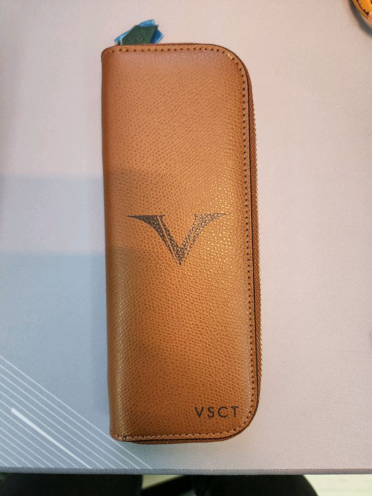 사놓고 보관만 해오던 비스콘티 가죽 2구 펜파우치입니다 케이스 등은 없으며 펜파우치만 있습니다
