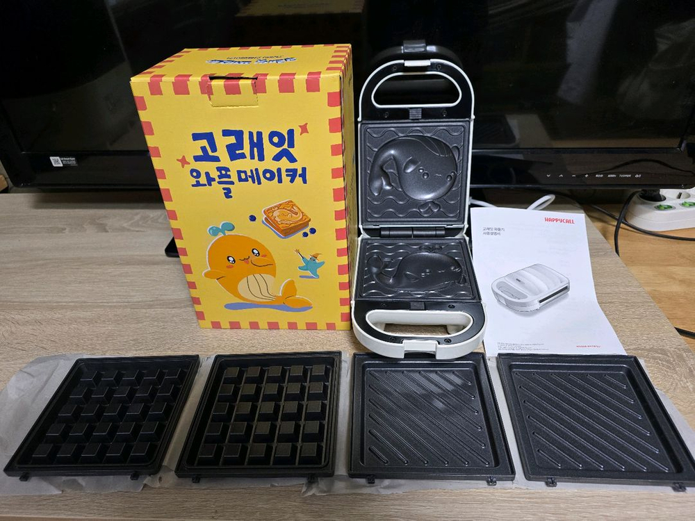 고래잇 와플메이커 새상품. 해피콜 제품(설명서에 적혀있음) 플레이트 ..고래잇, 와플, 샌드위치