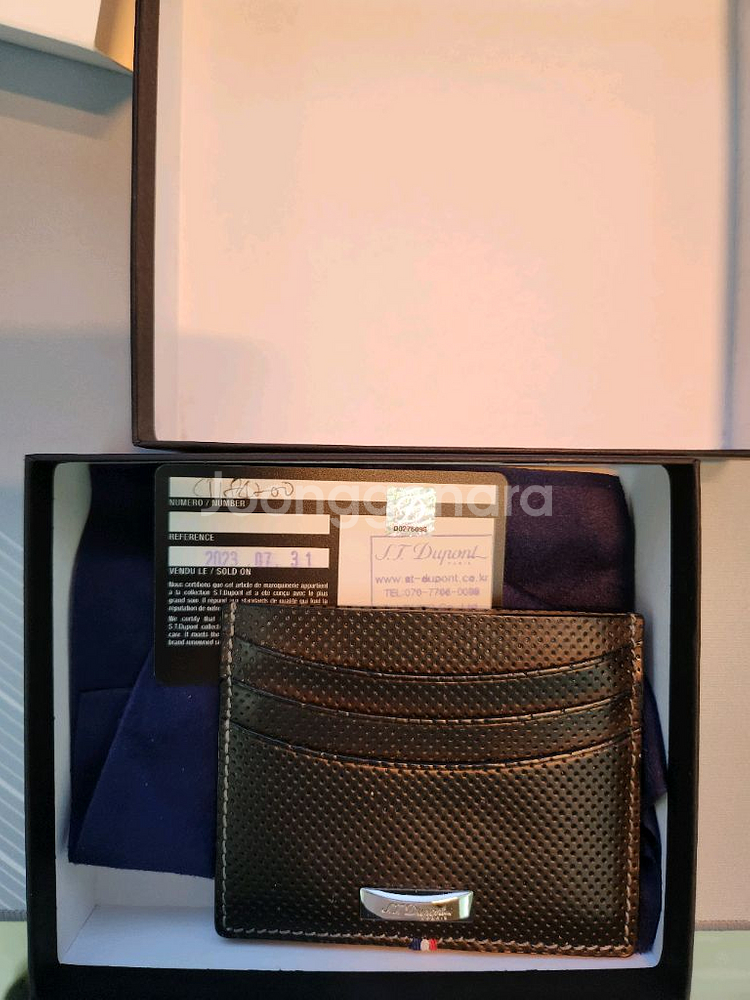 사놓고 보관만 해오던 듀퐁 카드지갑입니다 금속부분에 미세한 스크래치 있습니다 국내 SJ DUKO 정식 스탬핑이며 보증서 및 구성품 모두 포함입니다