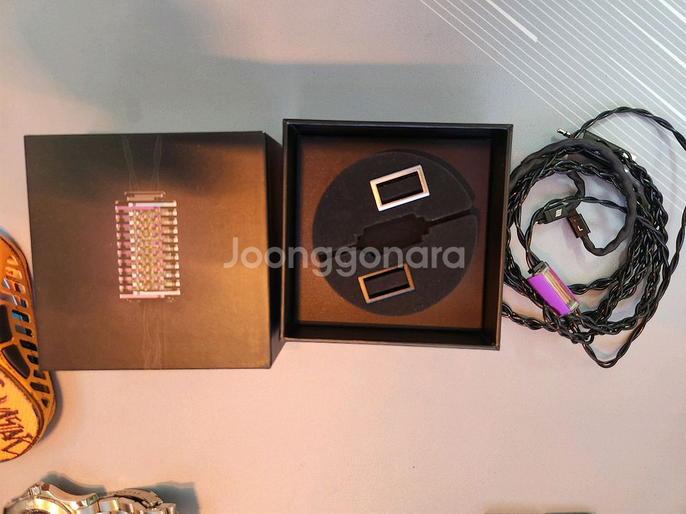 이펙트오디오 커스텀케이블 evo 1 입니다 구매당시 30만원 넘게 주고 구매했던 제품입니다 단자 및 케이블 상태는 좋으며 2pin 2.5mm 발란스 케이블입니다. 모든 구성품 포함 박스풀입니다