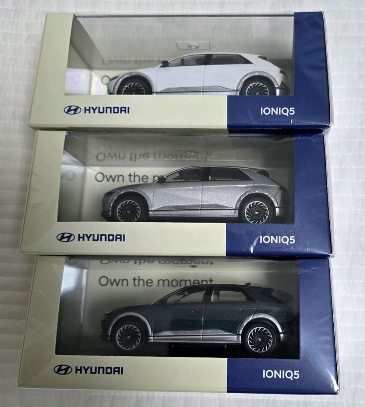 현대 아이오닉5 미니카 (다이캐스트 모델)입니다. 1:38 모델이 아닌 1:43 모델 입니다. (개당 약 4만원) 3종 세트 이며 비닐이 있는 새 상품 이나 장난감 특성 상 완벽한 퀄리티가 아닐수 있습니다. 어떠한 이유든 환불 불가 다이캐스트 수집 하다가 정리하려고 판매합니다. 경기도 고양시 직거래