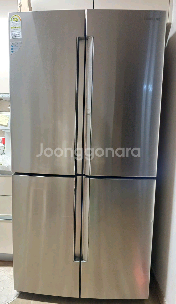 2019년 구입한 삼성 지펠 T9000 4도어 대용량 메탈쿨링 875리터입니다. 깔끔한 스테인리스 실버 외관에 깨끗하게 사용하며 잘 관리했구요. 삼성 amarthings 앱 깔고 핸드폰으로 연동해서 냉장고 제어가능합니다. 냉장고 외관에 이사하면서 찍힌 흠집 한두개있으나, 크게 거슬리지는 않습니다. 홈바형이라서 음료수 넣고빼기 편하며, 메탈쿨링이 신선하게 온도 유지해줍니다. 메탈쿨링 기능 추가라서 같은 모델이라도 몇십만원 더 비싸게 구입했어요. 이사가는집 키친핏 냉장고 구입으로 사용하지않아 저렴히 내놓습니다! 이삿날(2월24일) 내려드리면 가져가시면 됩니다. 노쇼로 인해 이삿날 당황하지않게 선금 3만원 받겠습니다. 제가 올린 에어컨, 냉장고 모두 다 가져가시면 가격협의해드리겠습니다. 연락주세요.